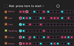 The idea materialised in 2001 during a coffee break at the NAMM show, when Scott Monteith (also known as Deadbeat), who was working for a software synthesiser manufacturer, and I discussed a simple concept: two people set and delete notes on a step sequencer that is displayed on screen during the performance, allowing the audience to follow the creation of the music in real time.